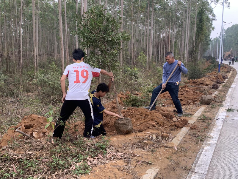 活动现场,杨柑镇党委副书记、镇长袁伟强,镇党委副书记李思聪,镇党委委员、纪委书记全马生等领导班子成员率先垂范,与镇相关部门工作人员、协和村党员干部、村长、师生、足球队员以及志愿者等50余人热情高涨地投入到植树行动中。此次活动充分利用协和村年终总结会前夕的契机,广泛动员各方力量参与,社会各界积极响应,为乡村绿化贡献力量。