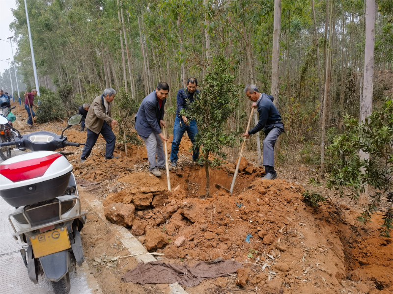 在协和村委会主道路819县道路口东边塘村路段两旁,300株柳叶红千层苗木在众人的齐心协力下扎根沃土。活动现场,大家分工明确、配合默契,挥锹培土、扶树填坑、踩土定植、浇水灌根,每一个环节都认真细致,现场呈现出一片热火朝天的劳动景象。一株株新栽种的树苗在阳光下生机勃勃,它们不仅为乡村增添了新绿,更象征着杨柑镇在宜居宜业和美乡村建设道路上迈出的坚实步伐。