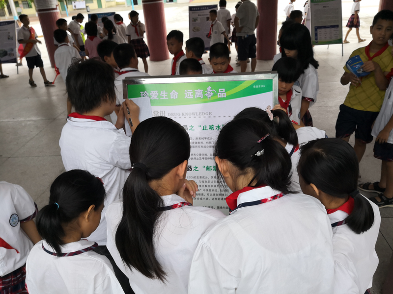 学习的脚步不会停止,宣传的声音更加洪亮。为普及禁毒知识,遏制毒品蔓延,加强校园禁毒宣传力度,提高青少年的心理预防能力和禁毒意识,在学校内营造人人参与禁毒的良好氛围。杨柑镇禁毒办公室联合杨柑教办、杨柑派出所、司法所于2019年6月13日在杨柑中心小学开展“湛江市禁毒宣传百校巡展”宣传活动,对杨柑中心小学1400余名师生进行禁毒知识宣传教育。杨柑镇人民政府负责人蒋养同志及镇党委委员、武装部长郑高文同志带领社会事务办相关同志参加本次活动,现场为师生进行禁毒宣讲教育。