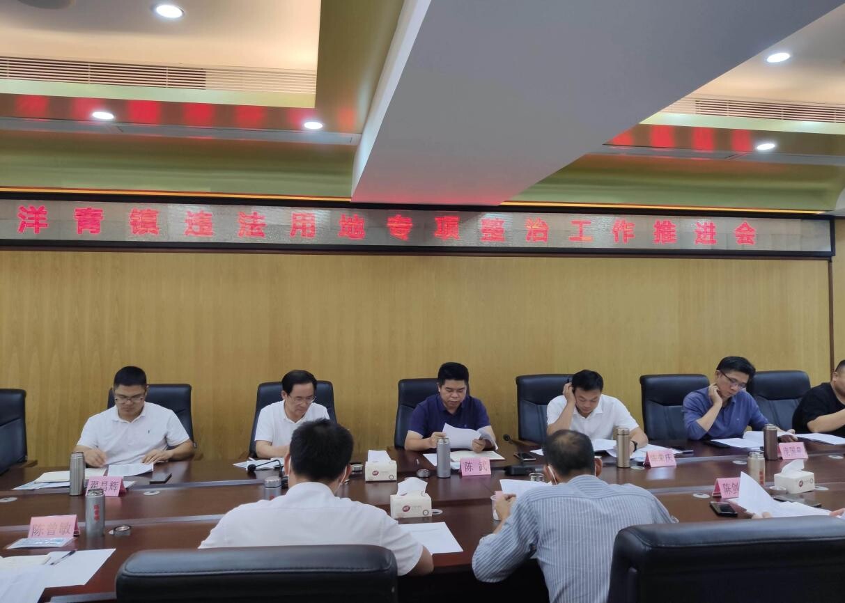 图为镇党委书记陈武组织召开违法用地专项整治工作会议,研究部署拆违行动