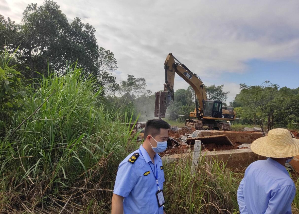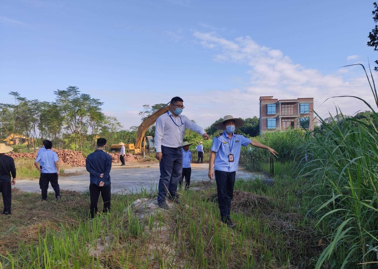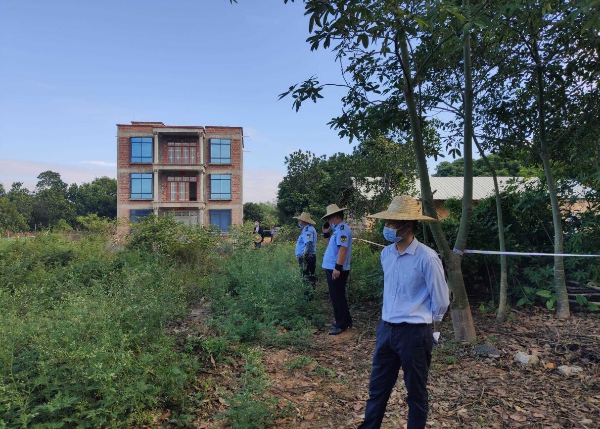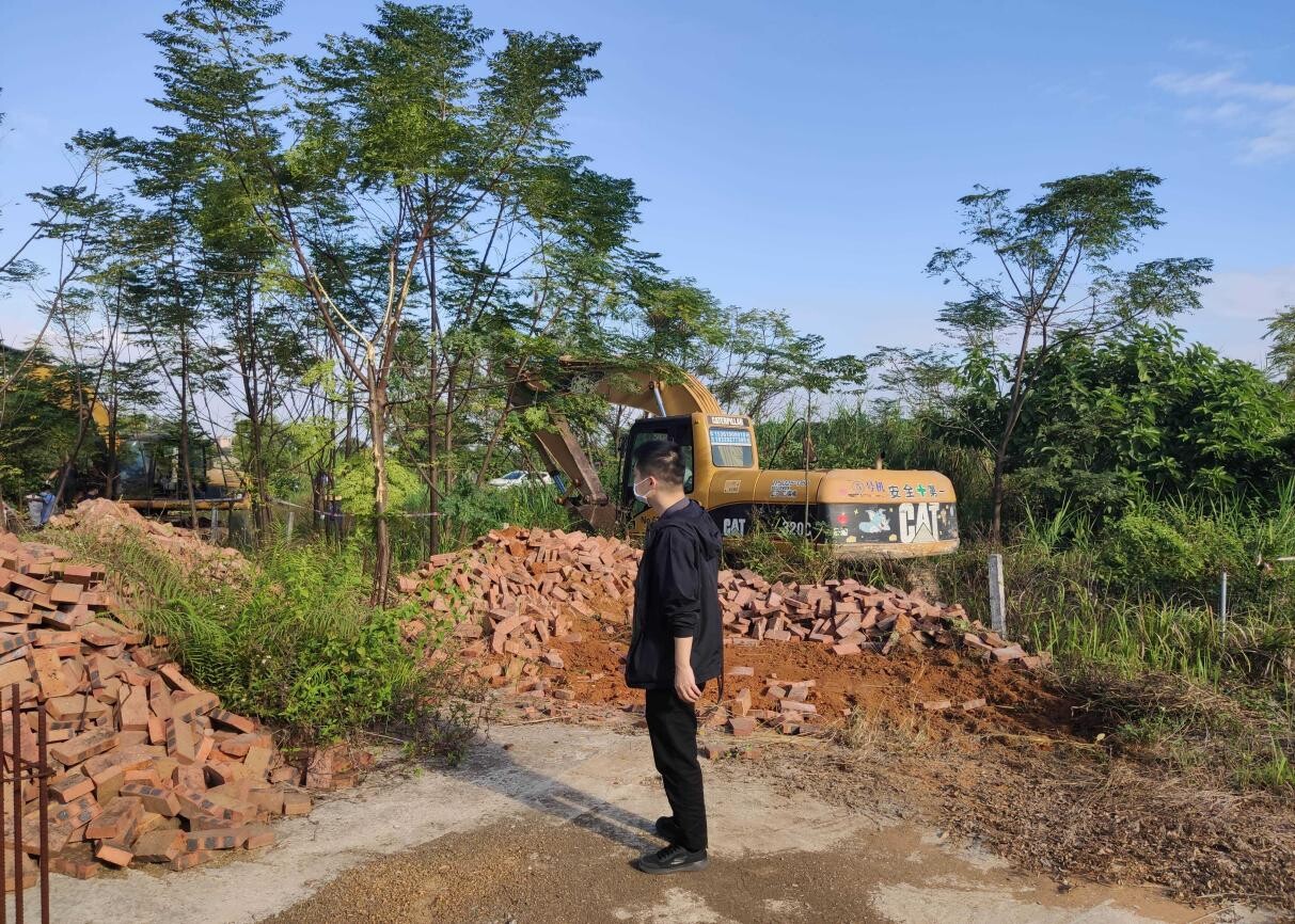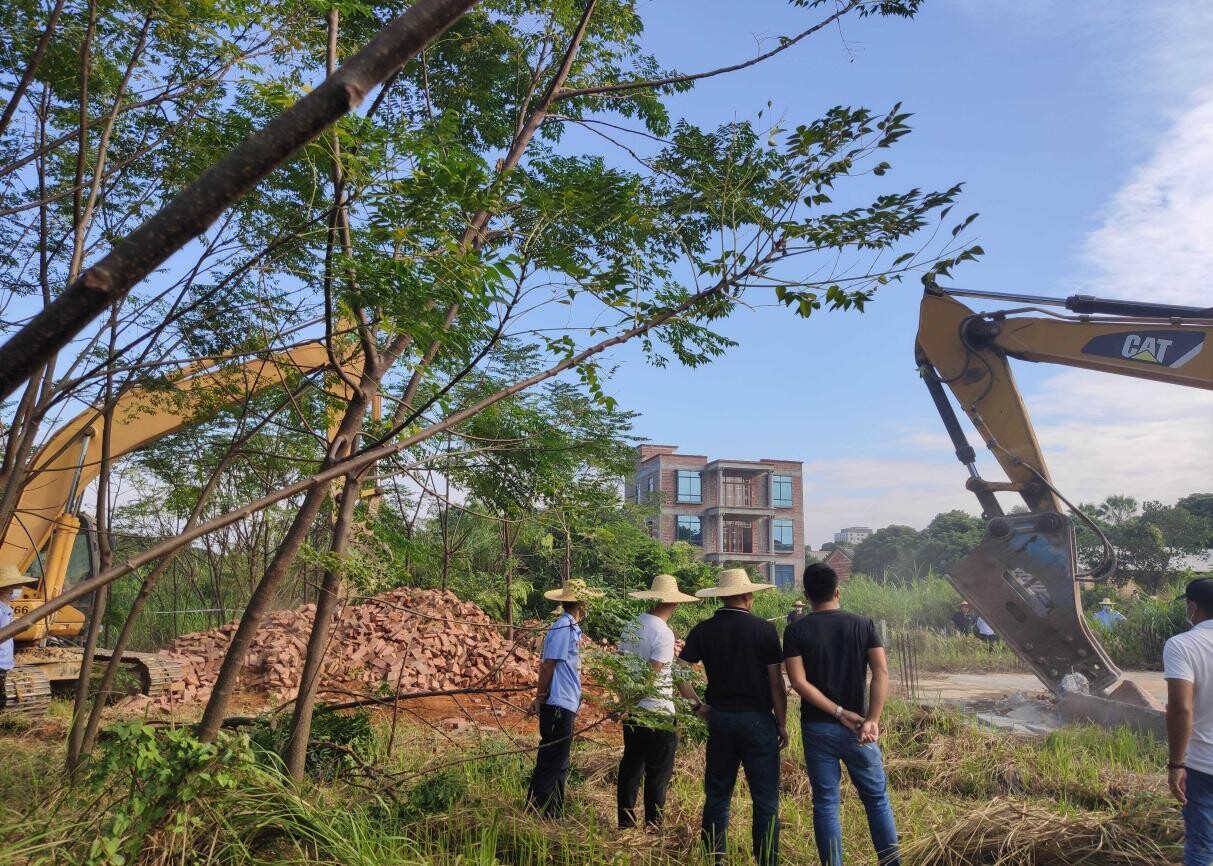 11月15日上午,洋青镇党委书记陈武亲自部署、统筹组织,镇党委副书记、镇长陈荣庆亲自带队、率领全镇干部职工、洋青卫生院、应急专职消防队、西埇村两委干部、部分村民群众,对西埇村委会烟墩村月度新增农村乱占耕地建房图斑44082321110065_1(耕地面积0.18亩)、耕地流出图斑4408231497SY_1(耕地面积0.53亩)以及巡查违规占用耕地建房(地基)共3处违建点进行依法拆除。