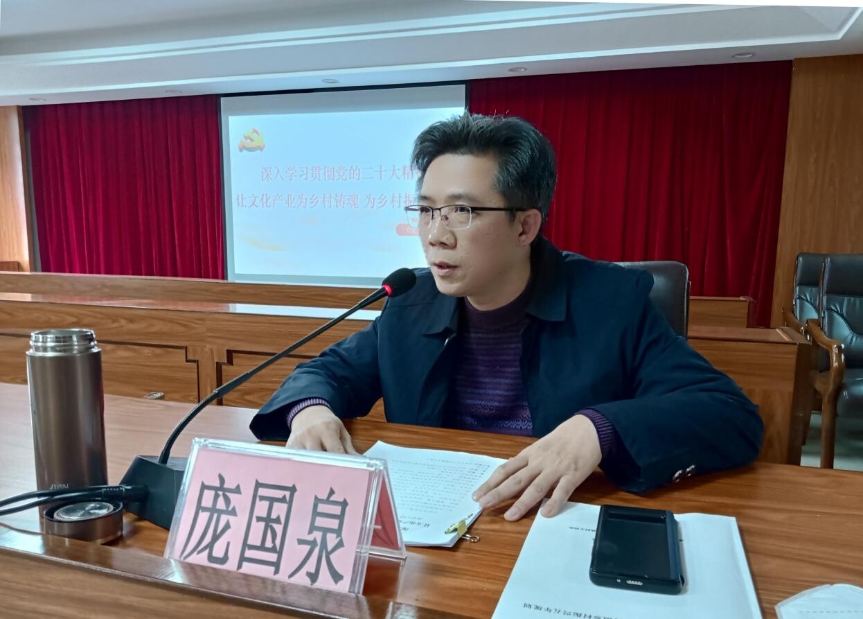 为深入学习贯彻党的二十大精神,1月4日下午,由遂溪县委宣传部主办,洋青镇党委、政府承办的遂溪县学习宣传贯彻党的二十大精神宣讲活动在洋青镇举行,市委讲师团副团长、洋青镇党委副书记、市乡村振兴驻洋青镇工作队队长庞国泉作了主题为《深入学习贯彻党的二十大精神,让文化产业为乡村铸魂