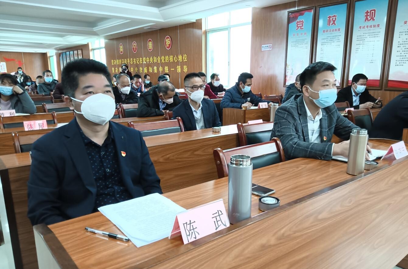图为洋青镇领导班子、各村(居)党支部书记或主任、各机关事业单位负责人、镇中层以上干部等聆听宣讲报告会(简陈明 摄)