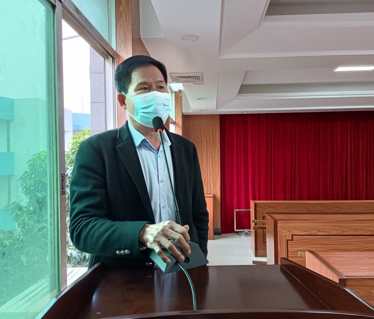 图为洋青镇洋青村党支部书记、村委会主任宋宁听完报告后谈学习体会(简陈明 摄)
