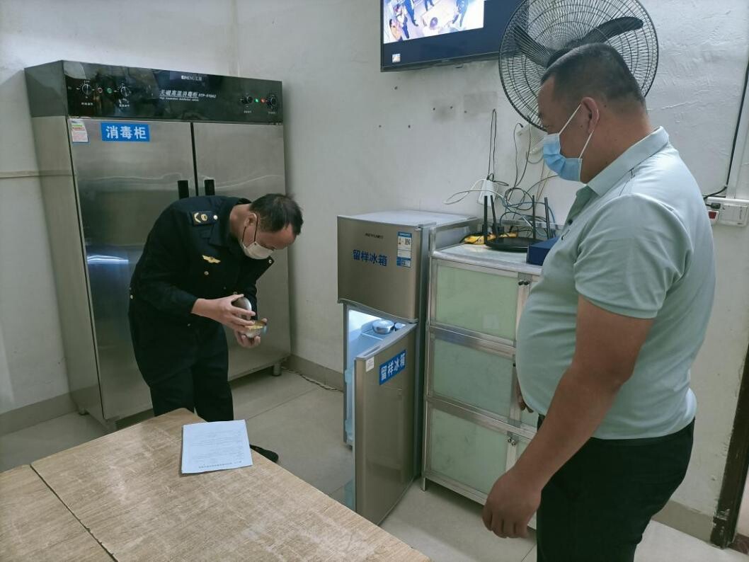 图为洋青市场监督管理所检查食堂食品安全问题