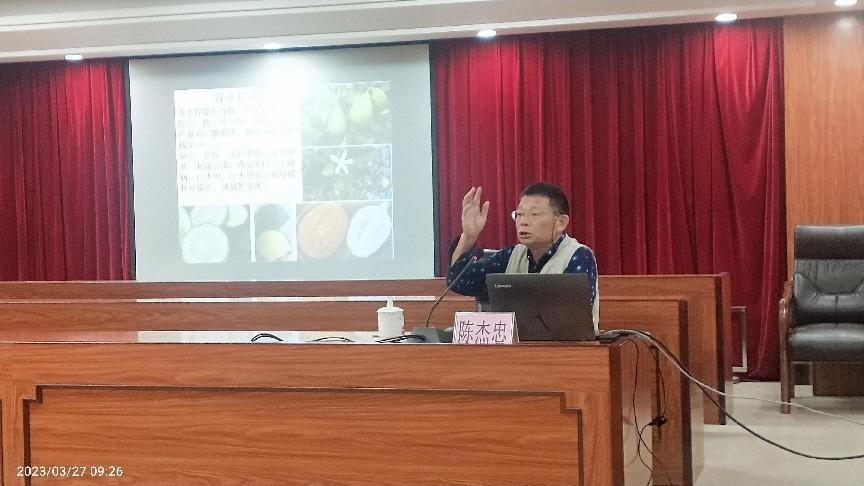 培训上半场,由陈杰忠教授开展特色农产品种植技术培训授课。陈杰忠教授采用通俗易懂的语言,向培训人员详细讲解防治病虫害技术以及柠檬、红柚、冰淇淋果、火龙果等特色农作物的品种推荐、种植和经济效益。培训班上,通过学员提问、专家解答的形式,陈杰忠教授解答了学员关于选种、培育等方面的诸多难题。通过此次种植技术培训,广大群众对科学种植技术有了更加深入直观的认识,从而能够更好地掌握科学种植技术,有效预防病虫害,全面提高农作物产量,助力全镇农业产业高质量发展。
