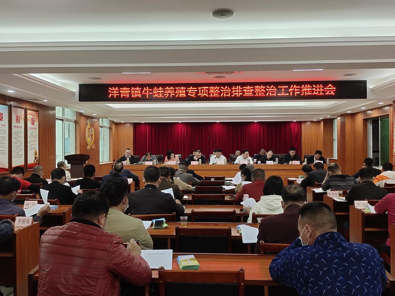 为切实做好全镇打击违法用地工作,进一步遏制农村乱占耕地建房现象,全力保护国家耕地红线,2023年4月14日,洋青镇在五楼会议室召开牛蛙养殖专项整治排查暨耕地保护工作会议,镇领导班子成员、各村(居)支部书记、下乡组组长等参加会议。