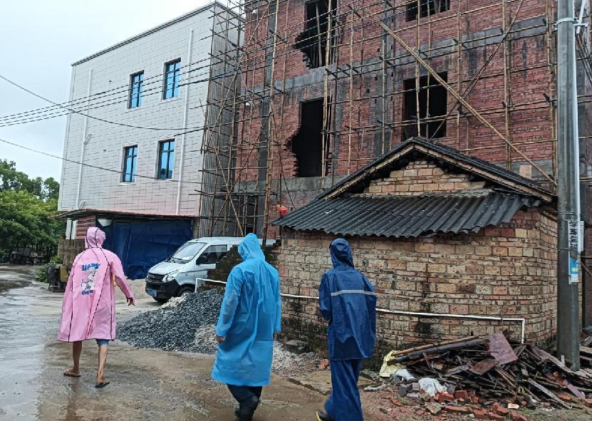 水流村委会下乡组、党员先锋队下户排查房屋受灾情况
