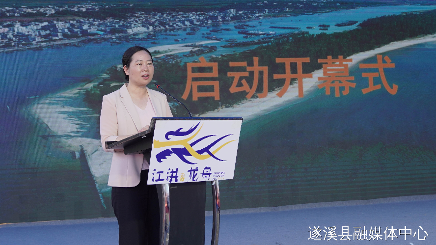 遂溪县人民政府副县长黄少娥宣布2025年广东遂溪 (江洪) 海上龙舟赛暨 “百千万工程”文旅周系列活动开幕。