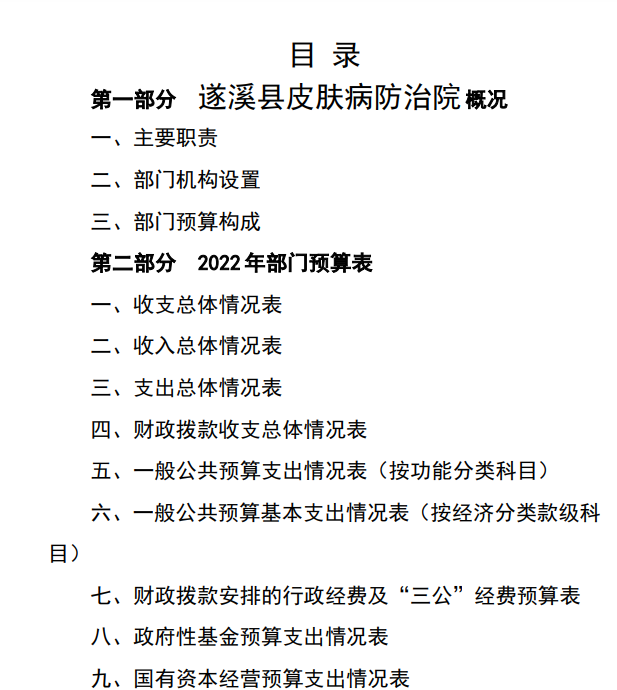 2022 年遂溪县皮肤病防治院部门预算 | | 作者: | 来源:县财政局 | 时间:2022-04-28 20:03:20 点击数:- 详情请见附件:2022年遂溪县皮肤病防治院部门预算.pdf 【打印正文】
