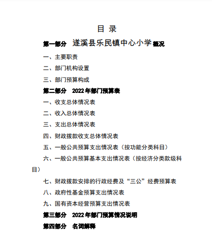 2022年遂溪县乐民镇中心小学部门预算 | | 作者: | 来源:县财政局 | 时间:2022-05-05 16:08:39 点击数:- 详情请见附件:2022年遂溪县乐民镇中心小学部门预算.pdf 【打印正文】