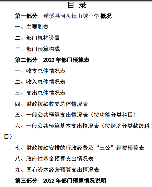 2022 年遂溪县河头镇山域小学部门预算 | | 作者: | 来源:县财政局 | 时间:2022-05-07 19:21:07 点击数:- 详情请见附件:2022年遂溪县河头镇山域小学部门预算.pdf 【打印正文】