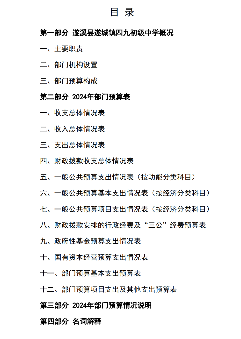 2024年遂溪县遂城镇四九初级中学部门预算 | | 作者: | 来源:遂溪县教育局 | 时间:2024-10-23 10:32:26 点击数:- 2024年遂溪县遂城镇四九初级中学部门预算.pdf 【打印正文】