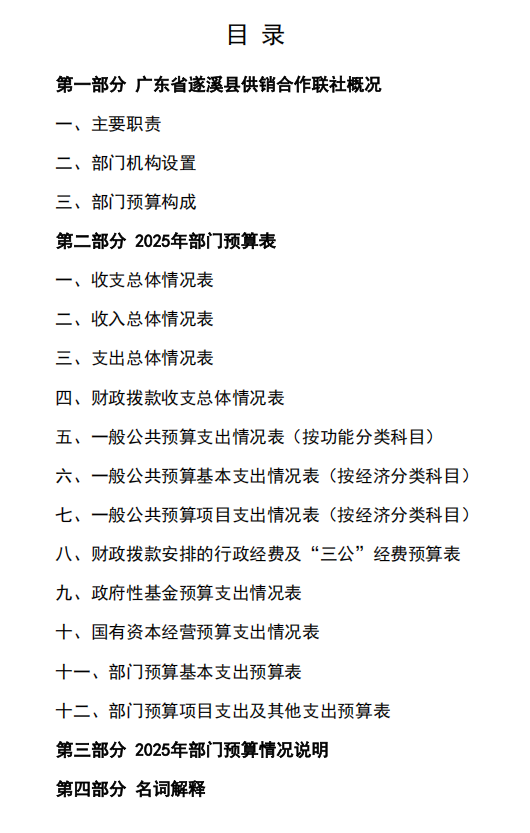 2025年广东省遂溪县供销合作联社部门预算 | | 作者: | 来源:广东省遂溪县供销合作联社 | 时间:2025-04-10 10:30:13 点击数:- 2025年广东省遂溪县供销合作联社部门预算 .pdf 【打印正文】