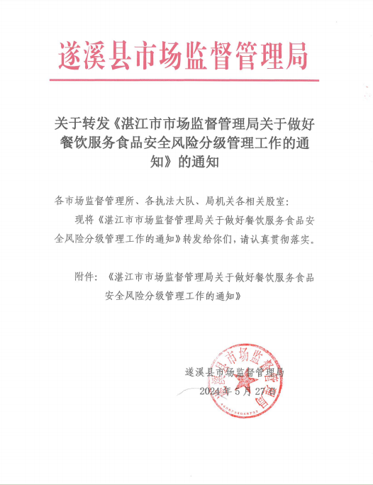 关于转发《湛江市市场监督管理局关于做好餐饮服务食品安全风险分级管理工作的通知》的通知