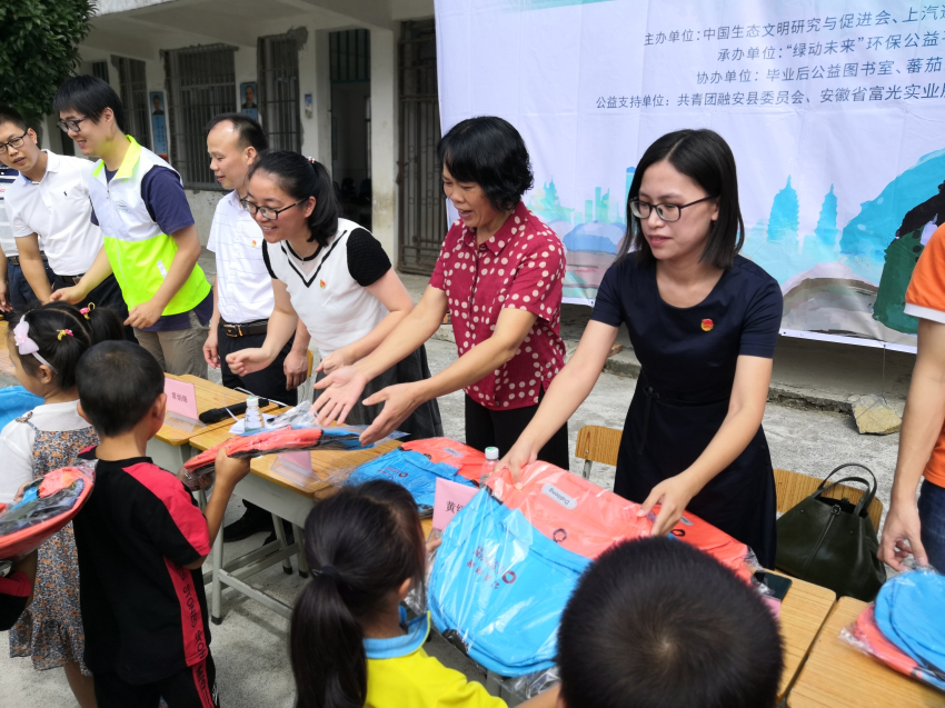 这次活动是共青团遂溪县委贯彻落实遂溪县委县政府关于粤桂(遂溪-融安)扶贫协作工作的部署和要求,积极发挥与团融安县委相互交流的桥梁作用,牵线中国生态文明研究与促进会、上汽通用汽车有限公司、“绿动未来”环保公益平台、毕业后公益图书室等爱心组织,整合社会上闲置书籍,捐赠了价值 10 余万爱心物资,包含图书、书架、桌椅、电脑等室内硬件设施(电视、电脑、网络),在融安县泗顶镇山贝小学援建“绿动未来”环保公益图书馆。