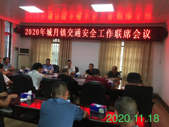为进一步做好城月镇道路交通安全工作,切实提升道路交通安全管理工作效能。城月镇在11月18日下午,召开了道路交通安全工作联席会议。城月镇党委副书记、镇长王武庆,党委委员、副镇长叶普,城月派出所、城月交警中队、城月交管站主要负责人,城月镇道路交通安全工作联席会议小组成员,各中小学校及各村(社区)的交通劝导员参加会议。