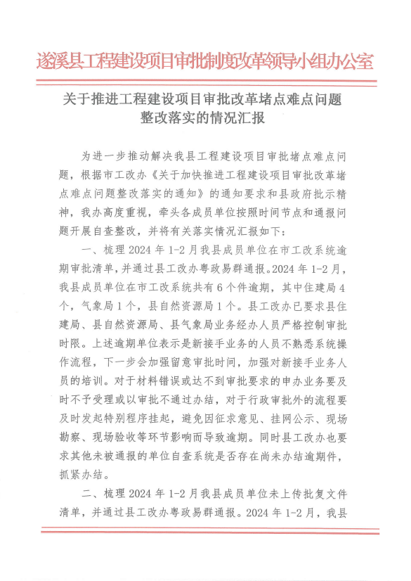 关于推进工程建设项目审批改革堵点难点问题整改落实的情况汇报