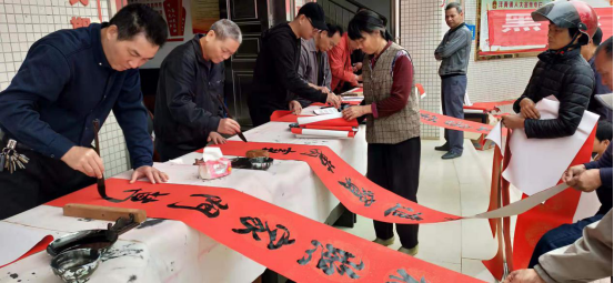 春节即将来临,为营造一个欢乐喜庆、文明祥和的节日氛围,我镇邀请遂溪县书法协会会长舒仁勇,以及遂溪县书法协会会员等为群众写春联、写福字,为机关干部群众和社区居民送上新春祝福。活动持续到中午1点,氛围热烈,年味十足,共赠送了300余幅(件)春联和福字。