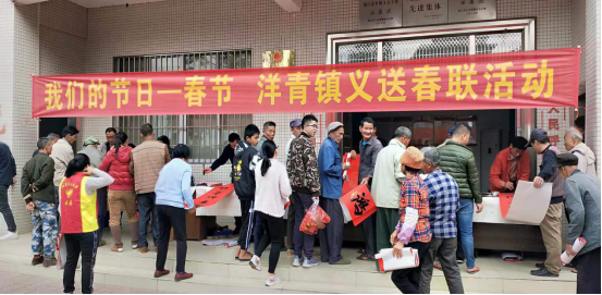 1月21日,我镇联合遂溪县书法协会共同开展“我们的节日——春节 洋青镇义送春联活动”,为群众免费现场书写、赠送春联。我镇镇长梁文涛、县书法协会会长舒仁勇出席活动。