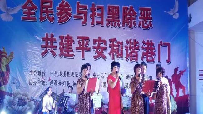 △县妇联、团县委推送的快板《扫黑除恶扬正气》、禁毒宣传小品《心灵的创伤》、反邪教宣传小品《中邪》、原创歌曲《想当初》和《铭心刻骨》等节目,深受群众欢迎