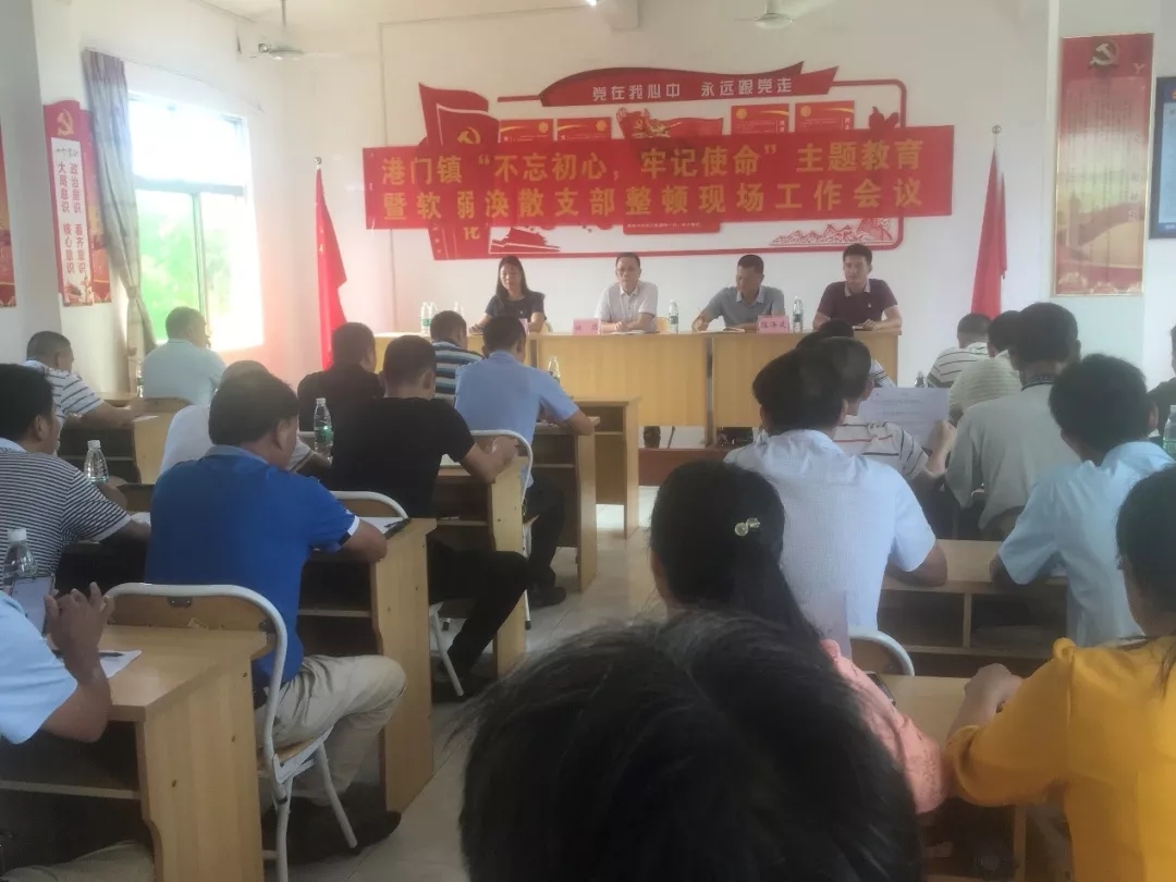 2019年10月9日,县人大常委会副主任姚德率市场监督局、科工贸和信息化局、招商局等挂点单位领导到港门镇督导“不忘初心、牢记使命”主题教育暨软弱涣散党支部整顿工作会议。会议在黄屋村委会召开,镇领导班子,各村党支部书记、组织委员,镇驻点黄屋村委会干部参加。镇委书记陈泽武主持会议。