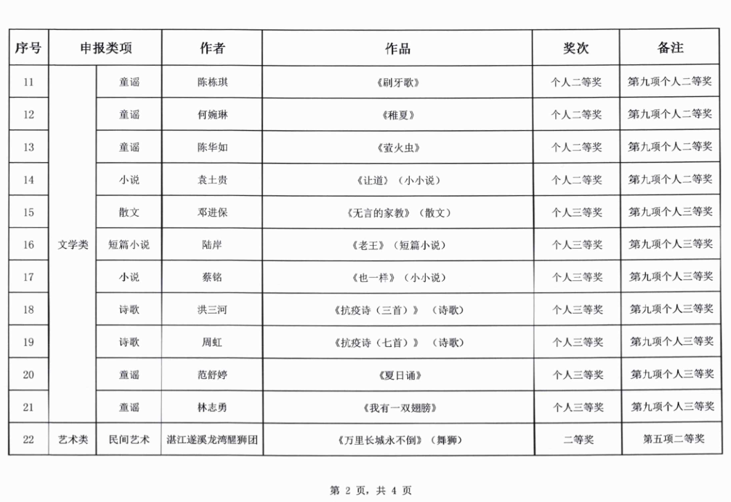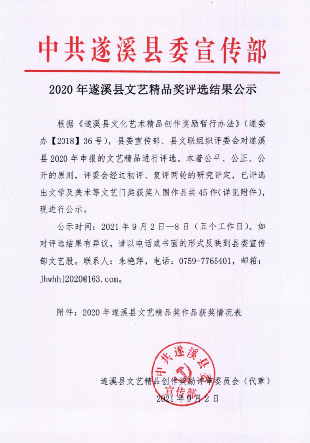 2020年遂溪县文艺精品奖评选结果公示