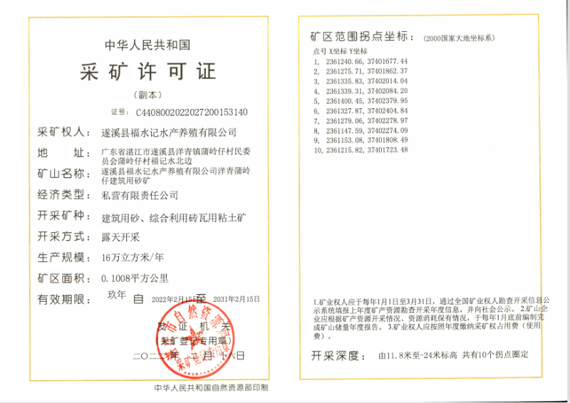 颁发采矿许可证通知 湛自然资(地矿)证字[2022]2号