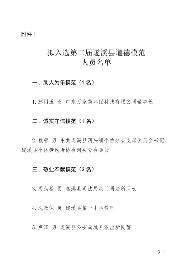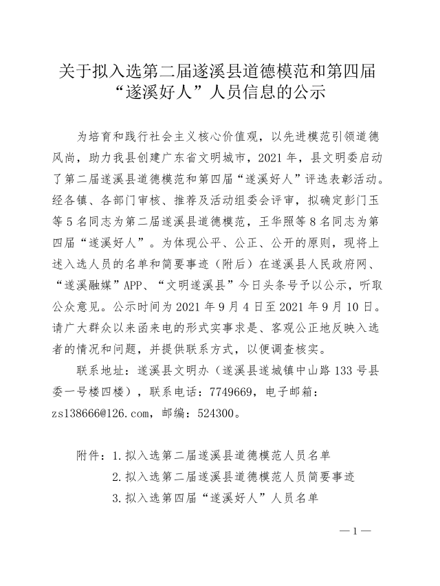 关于拟入选第二届遂溪县道德模范和第四届“遂溪好人”人员信息的公示